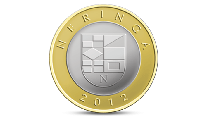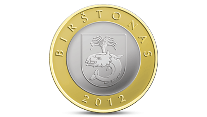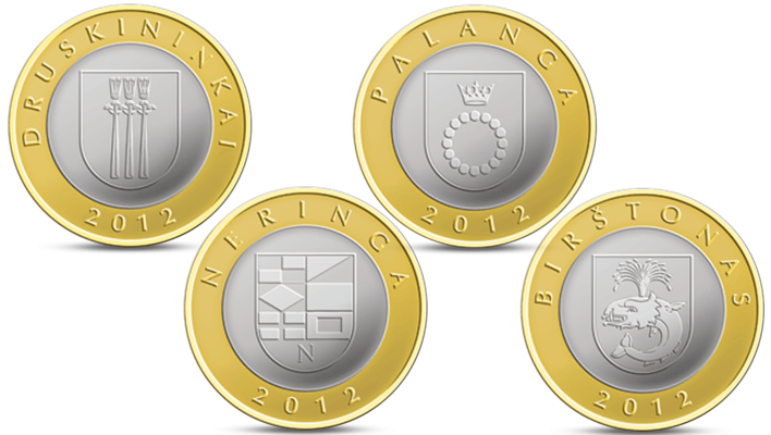 The Reverse of the four coins features the coat-of-arms of each resort in the centre, the inscription BIRŠTONAS, DRUSKININKAI, NERINGA or PALANGA above it, and the year of issue 2012 at the bottom.