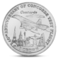 The Reverse: to the center the relief image of the Concorde. The down the outstanding sights symbolizing the cities, connected by flight Conkorde: The Eiffel Tower (Paris, France), Big Ben (England, London), Statue of Liberty (New York, USA), Christ's Statue - Iskupitelya (Brazil, Rio de Janeiro). Inscription - 40th ANNIVERSARY OF CONCORDE TEST FLIGHT. The down value - 1 CROWN.